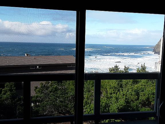 Spectacular panoramic views of the mighty Pacific from your front row seat in this great condo. A rare offering, these condos don't come on the market often. Enjoy the great views of the mighty Pacific and Cape Foul Weather from your full length covered deck. The kitchen features oak cabinets, a walk-in pantry, and a second large closet for additional storage. Enjoy the cozy fireplace on a stormy night and watch the waves through floor to ceiling glass in both the living room and bedroom. Both feature sliders and access to the deck. A full bath is located off of the living room and another one is located in the bedroom, as well as a large closet. Enjoy all the amenities that Otter Crest has to offer, including an oceanfront pool, hot tub, tennis courts, fitness center, on site restaurant and so much more. In addition, the living room has a hidden queen size Murphy bed for extra guests, and a corner dining area.
