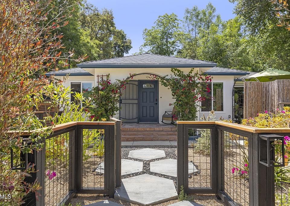 TWO Homes on ONE Lot! Each with separate address. This charming Spanish California Bungalow offers timeless style with thoughtful modern upgrades. The main home includes 2 bedrooms, 1 bath, and a versatile flex space--perfect for a home office, studio, or guest area. A fully permitted, detached 400 sq ft ADU is a studio with full bath, kitchen, and private patio. Over $100K in recent updates include new HVAC with 3 mini-splits, new electrical panels, updated lighting, smooth stucco, tankless water heater and ADU water heater, EV charging port, and whole-house water filtration. Refinished original hardwood floors, fencing and lush native landscaping with fruit trees and grapevines complete the picture. Set between Sarzotti Park and downtown Ojai, this home offers a rare blend of character & convenience.