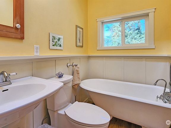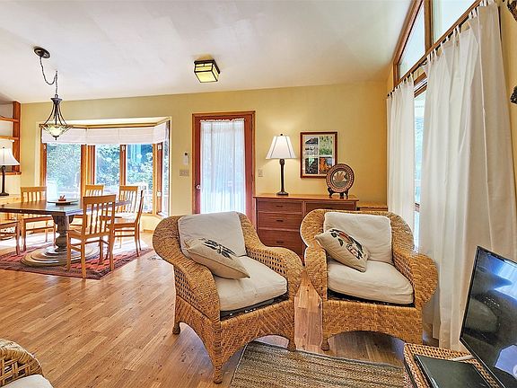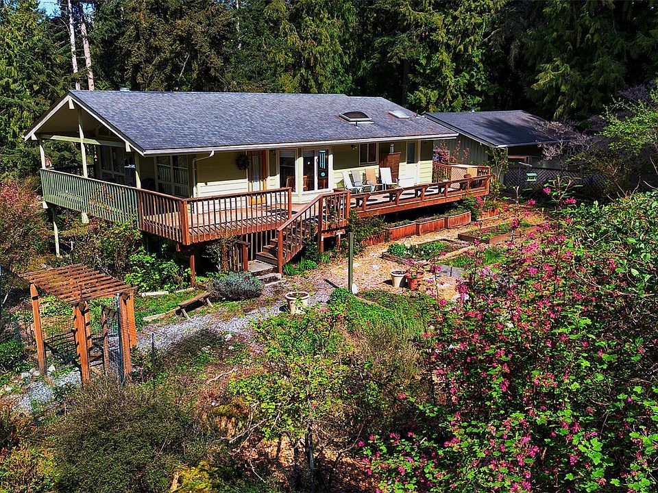 Welcome to this warm two-story, two-bedroom home. Inside, you'll be greeted by cozy indoor spaces with large, beautiful windows. Step onto the wide south-facing deck, offering peaceful views of a fenced woodland native garden, which serves as a haven for wildlife. Nestled on two half-acre lots, this property includes a detached two-car garage, providing a shop space and ramp access to the home. Ample storage options throughout including a downstairs kitchen, living room and a private entrance. Situated in a well-established neighborhood with excellent community water. Close to the Village and just steps away to private beach access, where you can walk the shore, look for shells, or catch a sunset.