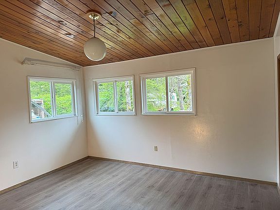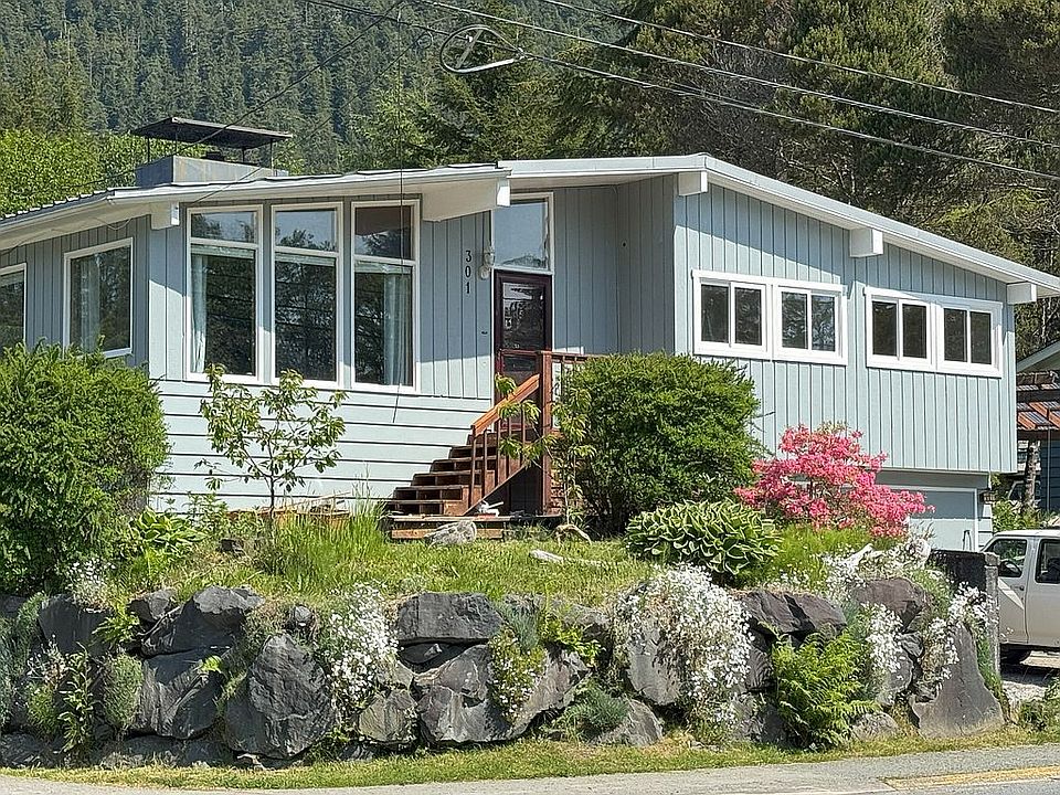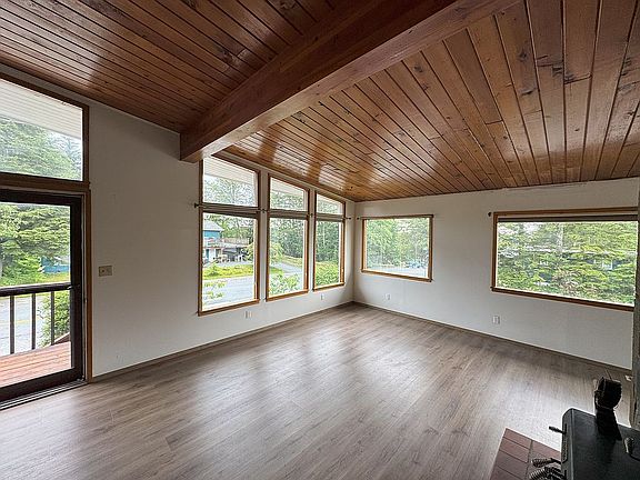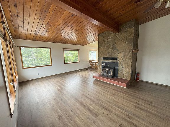 In town, corner double lot with lots of off-street parking and room for boats and toys. 3BR upstairs including spacious master suite. Fenced in backyard. New windows, new heat pump, new floors, new exterior paint job. Large living room has fireplace with wood stove insert. Finished basement with large rec room 19x14 , fireplace with wood stove insert, separate office and laundry/utility room. Potential for in-law suite. Double garage currently used as shop. Walk to high school 1 block.