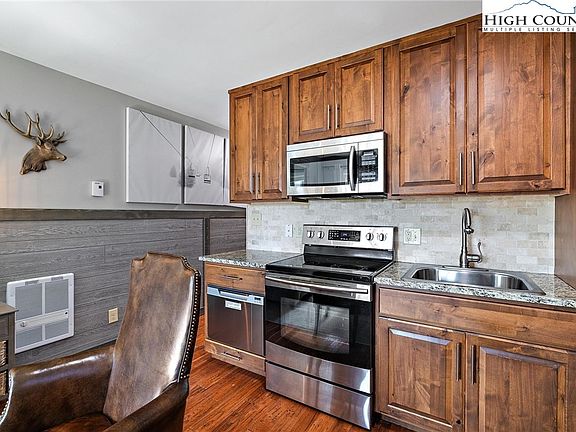 Your affordable mountain oasis awaits! NO STAIRS! RENOVATED, TURNKEY, EASILY ACCESSIBLE, FIRST FLOOR UNIT with SKI SLOPE VIEW. Established vacation rental property sleeps 4 with king bed and sleeper sofa. THIS BEAUTIFULLY DECORATED CONDO IS MOVE IN READY! Just pack your toothbrush...All of the work has been done! Updated with stainless appliances, granite countertops in kitchen, tile backsplash, tile shower, efficient electric wall heaters, and convenient washer/dryer in unit. At an elevation of over 5,000 ft, this location is ideal for all four seasons! Enjoy snowy winters and cool summers on Beech Mtn. Electric fireplace is cozy on those chilly evenings. Escape the heat in the summer months. Take in the cool mountain air from the covered porch. Summer temps on Beech Mtn rarely exceed 80 degrees! PET FRIENDLY-Owners can have 2 pets/unit and the Beech Mtn Dog Park is adjacent to Pinnacle Inn! ONLY PAY FOR ELECTRIC because the $400/month POA Fee includes water, sewer, internet, cable, trash, local phone and the MANY AMENITIES at Pinnacle Inn: Indoor pool, pickleball, tennis, hot tub, fitness, sauna, game room, mini golf, grills & more! PRIME LOCATION on Beech Mtn & amenities are hard to find! Not far from Fred's General Store, Restaurants, Breweries, Playground, Sledding Hill & Wedding Venues. Beech Mtn Resort is nearby for skiing, tubing, ice skating, mtn biking, concerts, etc. Less than 10 minutes to downtown Banner Elk.