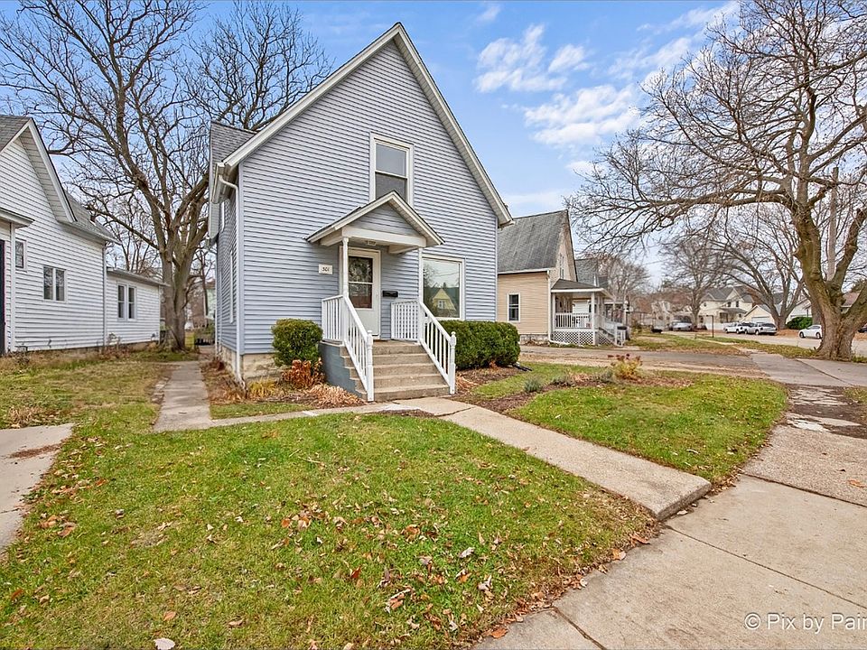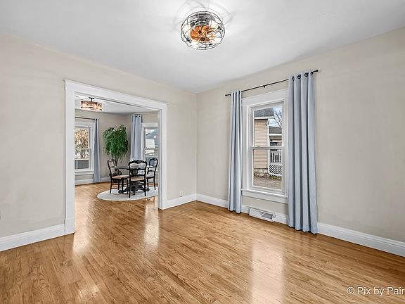 Such charm and character await in this inviting 1.5 STORY 3-BEDROOM, 1.1-BATH home with a welcoming COVERED FRONT PORCH. Step inside to recently REFINISHED, gleaming HARDWOOD floors, wide vintage trim, and a sun-filled living room that flows into the bright DINING ROOM with BAY windows. The UPDATED KITCHEN features BUTCHER BLOCK countertops, a large STAINLESS STEEL farmhouse sink, RO WATER FILTRATION SYSTEM, BREAKFAST BAR seating, and ALL STAINLESS STEEL APPLIANCES with electric stove and HOOD. A newer POWDER ROOM (2023) and a convenient 1ST FLOOR BEDROOM/HOME OFFICE add to the functionality of the main level. Step out back to enjoy the spacious DECK & YARD, complete with a newer SHED. Upstairs, you'll find TWO BEDROOMS both with generously sized WALK-IN CLOSETS, fresh neutral paint and LARGE FULL BATH. The full BASEMENT offers exterior access and includes a partially finished REC room, LAUNDRY Room, utility space, and additional STORAGE/WORKSHOP room. NEWER SHED, ROOF-2021, PAINT & LIGHTING updated throughout. Electrical, plumbing, vinyl windows and HVAC have all been updated over the recent years as well. Truly nothing to do but move in and make this charming home your own! Low Taxes!