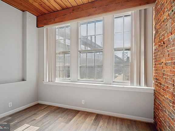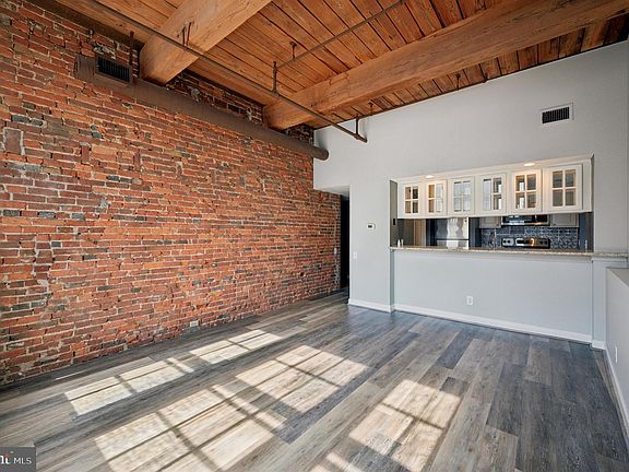 Welcome to 301 Race St #202 – a bright and character-filled one-bedroom condo located in the heart of Old City. This spacious unit features soaring timber-beamed ceilings, exposed brick walls, and oversized industrial-style windows that fill the space with natural light and offer unparalled views of the Ben Franklin Bridge. The open living and dining area boasts modern flooring, fresh paint, and a warm, loft-like feel. The renovated kitchen is equipped with granite countertops, white shaker cabinets, stainless steel appliances, and a convenient breakfast bar. The updated bathroom showcases contemporary tile finishes and a stylish vanity. The bedroom offers high ceilings, great light, and a walk-through closet with mirrored doors. Additional perks include in-unit laundry and generous closet space. Located in the secure and pet-friendly Wireworks building, which features elevator access, on-site maintenance, bike storage, and a recently upgraded lobby and mailroom. Just steps from some of the best dining, shops, galleries, and public transit in the city—this is a perfect blend of historic charm and modern living.