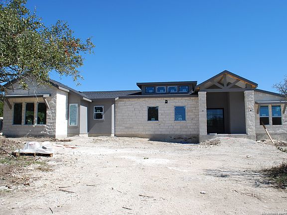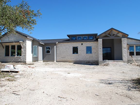 Welcome Home to your Hill Country Haven! This stunning 2,353 sq ft home sits on over an acre, offering a perfect blend of modern comfort and spacious living! Featuring elegant ceramic tile throughout, the home boasts a double-sided fireplace creating a cozy ambience between the living and dining areas. With high vaulted ceilings throughout, the master suite is a true retreat with direct access to an office, and highlighted by an amazing shower designed with beauty and relaxation. A 6'x8' front door makes a grand entrance, while a tri-fold door seamlessly connects indoor and outdoor spaces perfect for entertaining. This property combines luxury and functionality in a serene setting. Community Features Include: Gated Entry, Jr. Olympic Swimming Pool, 18 Hole Golf Course Access within Community, Playground/B-Ball court, and a Private Guadalupe River Park!
