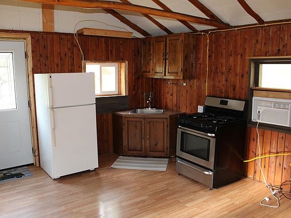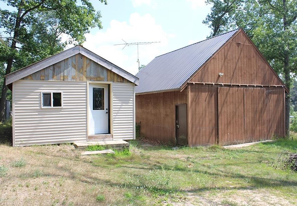 Rustic 1 bedroom cottage with a 24x32 pole barn with a loft. This cottage is on a corner lot and within 500 feet of state land. This cottage was recently lived in as a year around home. The bathroom and electrical (100 amp breaker box) were recently updated, vinyl siding and metal roofs are newer as well along with windows and flooring the cottage also has washer & dryer hook-ups. Pole barn has a huge loft for extra storage.