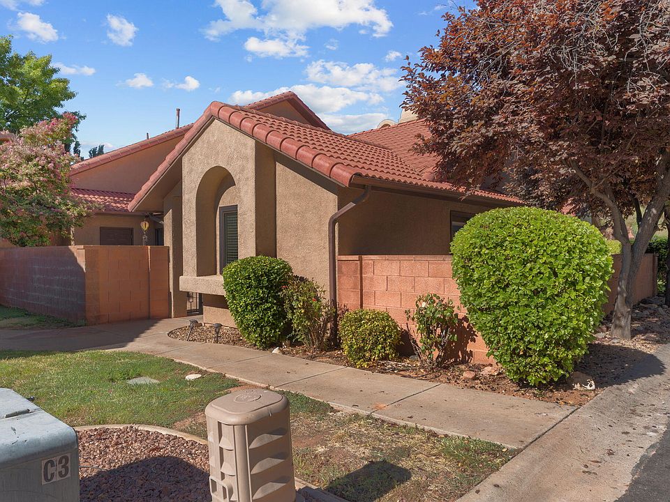 Nestled in the amazing community of the Mesas this beautiful Townhome is priced to sell at 20 k below comps. This property is conveniently located next to Utah Tech, Hospital, shopping and restaurants. This 2bed 2 bath boast two enclosed patios with storage, new windows gutter guard and covered carport with storage access above. Enjoy the mature shade and fruit trees as you walk to the sparkling community pool at the clubhouse. Ready for the new owner to enjoy!! Information deemed reliable, however buyer to verify all information including utilities, rental restrictions, and HOA information if applicable.
