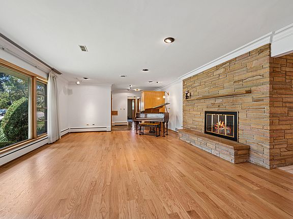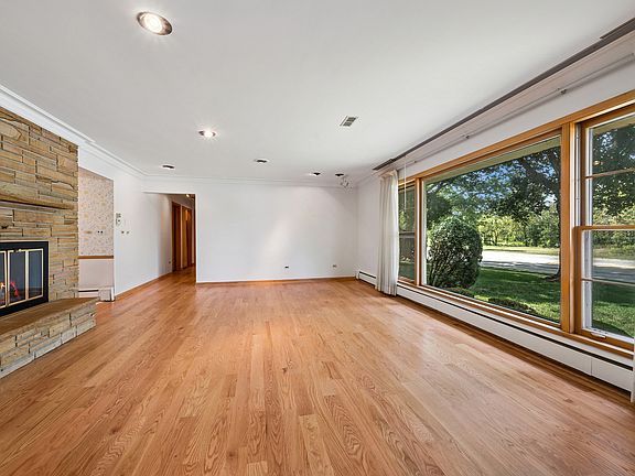 Rare find! First time on the market in 45 years & nothing else like it! Welcome to this SPACIOUS, lovingly cared for, mid-century modern, custom built home in Elk Grove Village offering comfort, character and plenty of room to grow. With four generously sized bedrooms and two full bathrooms all on the main level, this home features freshly refinished/new hardwood floors that flow through the living room and three of the four bedrooms. Spacious yet inviting, your living room, complete with a wood burning fireplace, will be the center of your home and perfect for hosting holiday parties! The kitchen includes space for a large table and overlooks the beautiful backyard. A cozy family room addition at the back of the home opens up to the landscaped yard-complete with a large patio, koi pond and plenty of room to entertain. A true standout is the HUGE finished basement-a rare find in ranch-style homes-featuring new carpet, a built-in bar, wood-burning fireplace, and abundant storage. An attached 3.5-car garage provides even more convenience. Solid, cinderblock construction, tons of natural light throughout and both indoor and outdoor spaces designed for entertaining or everyday living, this home is the perfect blend of mid-century style and modern functionality. Located across the street from the bike/walking trails at Busse Woods and down the street from the NEW Elk Grove shopping center! Schedule your showing today!