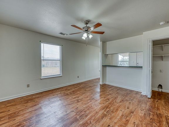 Great sizeFully fenced backyardWell-appointed guest bathroomTwo additional storage closetsPlenty of cabinet spaceCovered back deckBrand-new metal roof