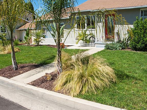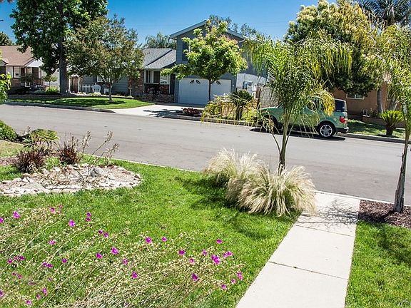 Easy to love this charming & inviting curbside beauty that's move in ready. A spacious,(330 ft) step down, bright & cheery family room with wood burning fireplace, tasteful upgraded flooring & custom built in cabinets makes family living convenient & comfortable; family room would easily be modified/converted into a private, spacious master bedroom if desired. A gorgeous bathroom remodel includes copper plumbing, new bathtub, contemporary flooring & lights. Complete HVAC system installed less than 1 year ago to include a 200 amp electrical panel upgrade (13 Seer, also new ductwork). A family kitchen with stainless steel appliances include newer stove/oven, microwave, newer dishwasher and ample room for table and chairs. The private back yard has drought resistant landscaping, except for little pineapple plants that match their fun beach decor. The Covered patio area is a perfect place to entertain and BBQ. A 2 car garage with newly installed garage door and opener along with a separate back yard storage shed add additional storage. Backyard gate allows vehicle access and vehicle protection with a 12 foot by 18 ft carport cover.
