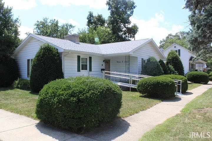 CHARMING 2 BEDROOM in GREAT LOCATION! Discover your new home in this well built cozy 2 bedroom 1 bath 1 story home perfectly situated on a desirable corner lot in town. Featuring a spacious living room with limestone gas log fireplace, eat-in kitchen with stove and refrigerator, partial basement with laundry area, updated roof/furnace/water heater. Fenced side yard + 1 car detached garage and concrete driveway. Easy access to downtown Knox, schools, hospital and park! Sold AS-IS!