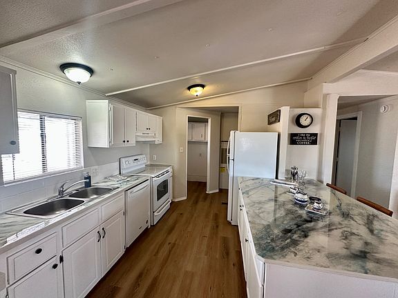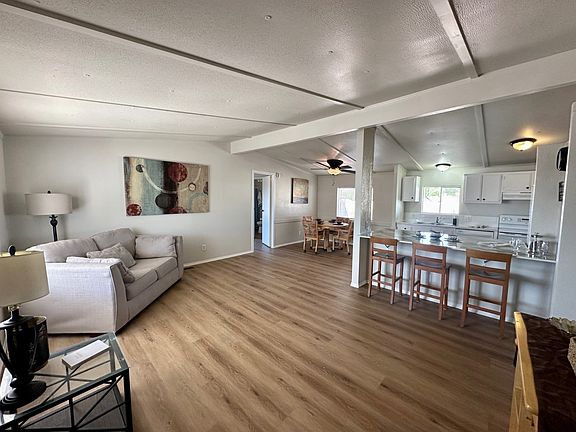 WOW! Huge corner lot! this 3 BR 2 BA has NEW AC NEW FURNACE NEW ROOF NEW PLUMBING UPDATED KITCHEN AND BATHS NEW LAMINATE FLOORING. Open living room to informal dining area. Updated kitchen w island counter, new countertops and tile back splash. Large primary bedroom w full length wall closet. Primary bath has walk in shower and linen closet. The other two bedrooms are generously sized w wall closets. NO CARPET! Wood laminate throughout. Handicap ramp at front door. Have all the friends gather for BBQs at the HUGE side lot. Set up a gazebo and have fun! Park requires a FICO credit score of 700 minimum for park approval. Lot rent is $864 plus water sewer trash. Park offers FULL amenities. Pets accepted up to 35 lbs.