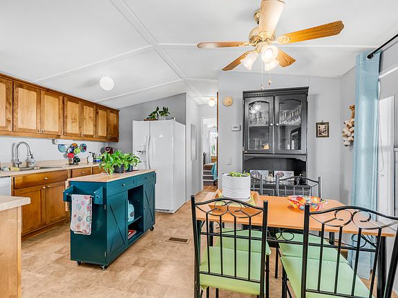 Welcome to your dream retreat in the heart of the highly sought-after Superstition Buttes 55+ community! This charming and beautifully maintained 3-bedroom, 2-bath split floorplan home offers the perfect blend of comfort, style, and functionality. From the moment you step inside, you'll be greeted by all solid-surface flooring and fresh interior paint, creating a bright and welcoming atmosphere throughout. The spacious, open kitchen has been thoughtfully updated with modern countertops, a sleek new faucet, a kitchen island for gathering or prepping, and a full-sized dishwasher—making it a joy to cook and entertain, whether you're hosting guests or enjoying a quiet meal at home. The generously sized master suite is your own private sanctuary, complete with a walk-in closet and a converted, easy-step tub that offers great accessibility. Two additional bedrooms provide plenty of flexibilityperfect for a guest room, home office, hobby room, or anything else your lifestyle requires. The cozy living room invites you to unwind with modern furnishings and your very own electric fireplace, creating the perfect ambiance for cool desert evenings or lazy afternoons. Step into the laundry room, fully equipped with a full-sized washer and dryer, plus added storage for all your essentials. Outside, the Arizona lifestyle truly comes to life on the spacious wooden deck, an ideal space to sip your morning coffee, watch the sunrise, or simply enjoy the tranquil surroundings. When temperatures rise, just turn on the built-in misting system and relax in your personal outdoor oasis. A detached storage shed offers extra space for tools, toys, or seasonal décor, while the covered carport easily accommodates two vehicles. But that's not allthis incredible home also comes with its very own golf cart, giving you easy and fun access to all the amenities Superstition Buttes has to offer, including the clubhouse, pool, golf course, pickleball courts, and so much more. Whether you're looking to stay active or simply enjoy a vibrant community, this home truly has it all.