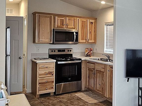 2026 Champion Park Model home. Designed as a smaller, easy-to-maintain unit, it’s ideal for winter visitors or those seeking a cozy vacation retreat. This 1-bedroom, 1-bathroom home comes furnished, featuring beautiful wood cabinetry in the kitchen, bathroom, and bedroom, along with a convenient walk-in shower. Set on an oversized lot, this home offers a covered driveway with a spacious awning providing shade and comfort, perfect for relaxing outdoors or entertaining guests. Plenty of room on the oversized lot for your toys.