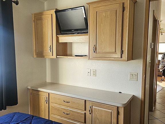 Charming and well-kept park model home set on an oversized lot! This inviting unit offers plenty of built-in storage and beautiful hutch cabinets perfect for displaying your favorite pieces. The bedroom features a large closet for ample wardrobe space, while the bathroom includes a relaxing tub. Outside, you’ll enjoy a covered driveway with a spacious awning—ideal for shade and convenience as well as another driveway on the opposite side of the home. Comfortable, practical, and full of character—this home is ready for you to move in and make it your own! Unit must remain in 55+ mobile home park.