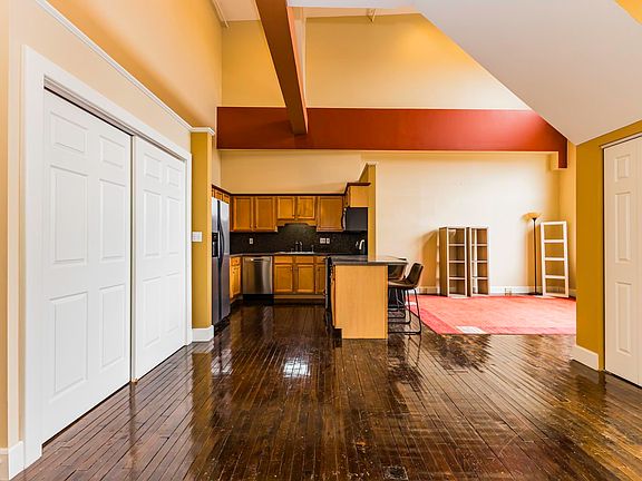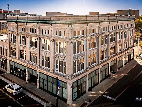 Elegant and extravagant loft condominium located in the heart of downtown! Historic elevator building features underground parking and a newly renovated rooftop deck. This unit has plentiful natural light from large windows, gleaming hardwood floors, and soaring ceilings with exposed ductwork. 2 full baths, 1 of which is en suite to primary bedroom, found on the upper level. Confluent great room, dining room, and kitchen provide dedicated spaces for living, while maintaining the overall bright and open atmosphere.