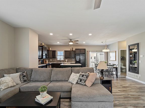 Welcome to this stunning end-unit modern townhome in Grimes! With 3 spacious bedrooms, 2.5 baths, and 1,568 sq ft of stylish living space, this home offers comfort, function, and convenience. The upgraded kitchen features sleek finishes and opens seamlessly to the main living area, with luxury vinyl plank flooring throughout the main level. Abundant natural light flows through large windows, highlighting the open layout. Upstairs, the Jack & Jill bath connects two generously sized bedrooms, while the primary suite offers a walk-in closet and private bathroom for added luxury. Enjoy morning coffee or evening sunsets on the back deck. A 2-car attached garage provides security and storage, with extra storage on the garage level. Located in a quiet neighborhood with low HOA dues covering lawn care and snow removal, this home makes maintenance a breeze. New HVAC in 2024, Remodeled Kitchen 2024, Newer Dishwasher, Washer and Dryer- this home is ready for you to move right in! Easy access to the metro ensures a smooth commute to Des Moines and surrounding areas. Whether you're looking for modern convenience or relaxed living, this townhome has it all.