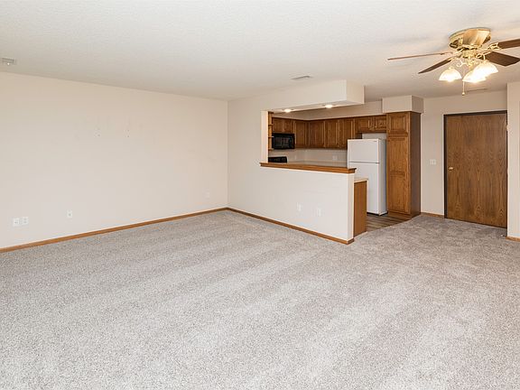 Desirable southern exposure 2 bed 2 bath condo with a great view of the courtyard from the full-sized deck with outside closet for extra storage. Nice open floor plan. Kitchen has ample counter space and pull-out shelving in pantry. All new carpet throughout and new flooring in the kitchen as well! All appliances stay. Feel at ease with secured and enclosed parking for convenience & safety as well as a locked storage space. Convenience surrounds your home w/shopping, interstate access, restaurants & parks all within walking distance! Low association dues cover exterior maintenance, water & sewer, master plan insurance, trash, lawn care, and snow removal. Additional features: secure entrance, elevator (this unit is only one door down), social area & rec room complete w/pool table, exercise equipment, and meeting room. 55+ community.