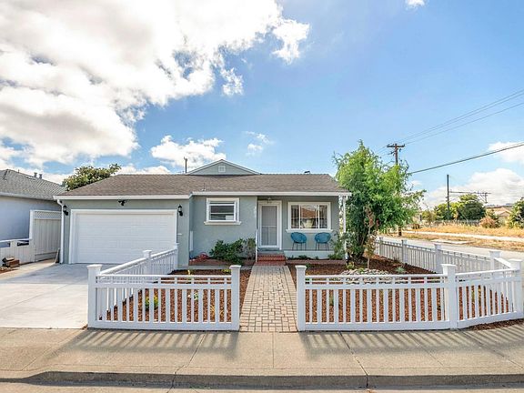 **Lowest priced home in Millbrae!** Nestled in one of the most conveniently located neighborhoods in Millbrae, this single story midcentury home is move-in ready. Approx. 1,140 sqft w/ 3 spacious bedrooms & 1 full bath w/ an additional bonus room and bathroom. Features include fresh paint inside & out, newly refinished hardwood floors, & new recessed lighting. Updated kitchen w/ stainless steel appliances, granite countertops, & a garden window. Newer roof & recently stamped concrete driveway. The approx. 5,000 SQFT corner lot features a picturesque white picket fence, pavers, & low maintenance landscaping in the front yard. A spacious backyard w/ lawn, covered patio & lighting are perfect for entertaining! Backyard also features two sheds for all your storage needs. Located near coveted & award winning Millbrae schools, Marina Vista park & a great local walking trail. Easy access to Bart & Caltrain, SFO airport, Mills Peninsula Medical Center, & downtown shopping & dining.