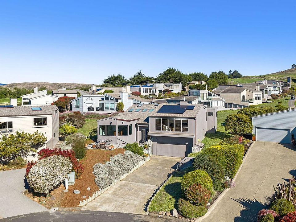 Enjoy captivating views from this thoughtfully updated Bodega Harbour home. The open floor plan creates a seamless flow ideal for entertaining. Impressive Pacific views are showcased from the living room which is warmed by a Regency gas fireplace and enhanced by Italian olive wood flooring. The recently updated kitchen boasts skylights that bring in an abundance of natural light and adds to the airy feel. Gleaming white cabinets and quartz counters host Jenn-Air stainless appliances including a gas range. The large primary suite sneaks a peek of Bodega Head utilizing a clever architectural detail, and boasts a walk-in closet and a stone-clad bath en suite with stall shower and skylight. A comfortable guest bedroom, guest bath and laundry closet complete this level. Nearby and a few steps down is an office that is outfitted with a wall-bed and doubles as the third bedroom. An atrium door provides access to a deck. Adding to the appeal, this home is situated at the end of a quiet cul-de-sac, is equipped with an owned solar array and battery backup, and the Grundfos re-circulator ensures instant hot water. Enjoy the clubhouse of this premier oceanfront community which offers amenities that include a bar, gymnasium, sauna, heated pool, tennis, bocce, basketball and beach trails.