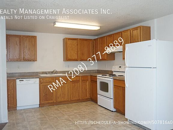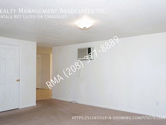 3 Bedroom/ 2bath unit in a tri-plex in Caldwell Full kitchen with all appliances other than a microwave. Washer dryer hookups. Electric baseboard heating and wall AC unit. Large private yard in front and a 1 car carport.