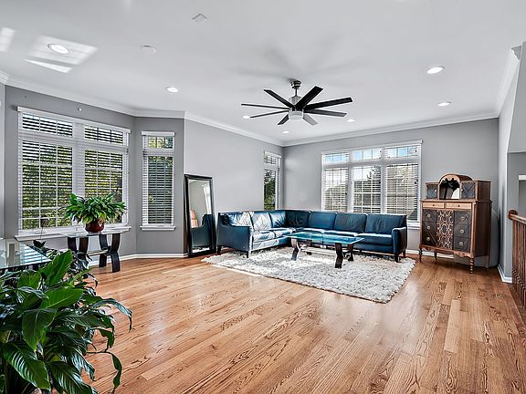 This exceptional end-unit townhome is a true gem, featuring an inviting open-concept design and showcasing the elegance of hardwood floors throughout. With 9-foot ceilings on the first floor, this 3-bedroom, 3.5-bathroom home includes a 2-car garage for your convenience. You'll love the abundance of natural light that graces this east-facing residence. The well-appointed kitchen boasts 42" cabinets, a pantry, and stainless steel appliances, all set against the backdrop of a large window that frames a picturesque park view. Sliding doors in the breakfast area open to a charming balcony, seamlessly blending the indoors with the outdoors. The second-floor master suite is a private retreat, offering two generously sized walk-in closets, a tray ceiling, and a spacious bathroom with a separate shower, Jacuzzi bathtub, and dual sink vanity. Another master bedroom on the second floor enjoys its own bathroom suite and an extra-large closet, providing ample space and comfort. You'll find exceptional storage throughout the home, ensuring your organizational needs are met. The second-floor loft includes a dedicated workstation, perfect for those who work from home. Ceiling fans in all bedrooms enhance both comfort and style, while the second-floor laundry room streamlines daily tasks. The lower level is a versatile space, complete with a full bath and an additional bedroom, making it an excellent in-law arrangement or guest suite. Additional features include a newer oversized HVAC unit and outside condenser (replaced in 2020), brand new siding and roof (2023), and a Wink System that allows for seamless connection and automation of home devices via phone or tablet from anywhere in the world. Numerous other improvements are detailed in the additional information. The location of this home is truly ideal, just minutes away from expressways and train stations, ensuring a convenient daily commute. Don't miss out on this incredible opportunity to make this remarkable townhome your own.