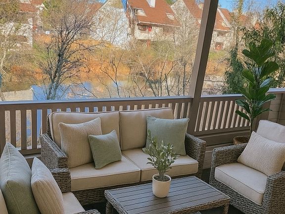 Wood-burning fireplaceSoaring vaulted ceilingsProfessionally maintained groundsBeautifully updated two-story condoAbundant natural lightOpen layoutPeaceful lake views