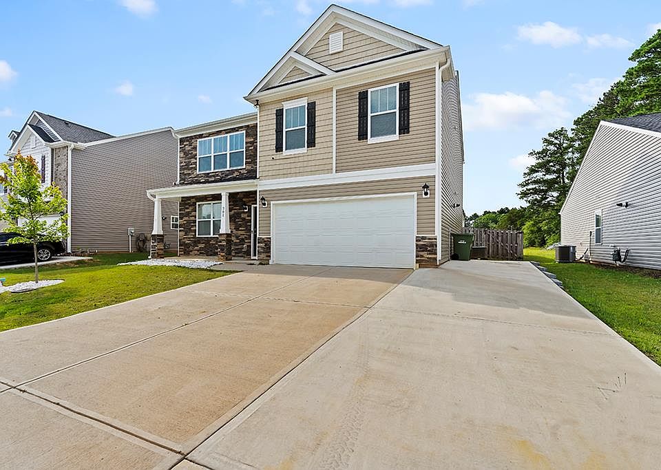 This traditional style residence is nestled in the sweet neighborhood of Milford Pines and boasts 2,521 square feet of comfortable living space. Upon entry, you are welcomed by luxury vinyl plank floors and tall, smooth ceilings. Cozy up by the gas fireplace in the inviting living room, perfect for relaxing evenings and gatherings with family and friends. The kitchen is a chef's delight, featuring modern recessed lighting, abundant cabinet storage, dazzling granite countertops, and sleek stainless steel appliances. The convenient downstairs bedroom is ideal for guests, a home office, or additional family space. Upstairs, you will find the master bedroom with a massive walk-in closet, providing ample storage for all your wardrobe needs, and an en-suite bathroom that offers double sinks and a spacious walk-in shower. Enjoy outdoor living year-round on the expansive covered patio, equipped with fans, a TV setup and a 220V circuit ready for a hot tub, perfect for entertaining or unwinding after a long day. Take advantage of the Milford Pines neighborhood pool, just a short walk away from this home. Additionally, it is only a short drive from local shopping, dining and entertainment option. Don't wait, come see this home today!