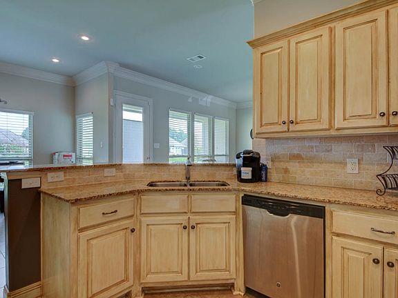Gorgeous home built in 2013, located in sought after neighborhood. This 4 bedroom, 3 bath house has so much to offer. Living room has ventless fireplace, double crown molding, and hardwood floors. The formal dining room enhances the beauty of the home. The kitchen is perfect for the chef that loves to cook; beautiful slab granite countertops completed with a tile backsplash, under mount sink, GE custom stainless appliances, and gorgeous custom built cabinetry. Ceramic tile flooring can be found in the kitchen, along with the bathrooms and utility room. The split floor plan ensures privacy for the master suite. Master bedroom is spacious, master bath offers soaker tub, full tile shower, and double sinks. Master and two bedrooms downstairs, one bedroom and bath upstairs. House did not flood in August 2016. Closing cost assistance offered through preferred lender.