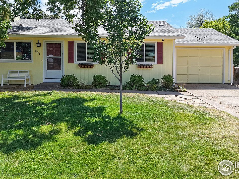 Charming Corner-Lot Home with Updates & Outdoor Oasis! Welcome to 301 Uranus St in Fort Collins - a beautifully maintained 3-bedroom, 2-bath ranch-style home on a spacious corner lot in the desirable Skyview South neighborhood. This 1,256 sq ft home offers a thoughtful mix of comfort, updates, and charm. Step inside to find newer windows, custom cabinetry, and can lighting throughout. The kitchen refrigerator, washer, and dryer all stay, making this home truly move-in ready. The extra-long garage offers plenty of storage space, and the big ensuite bedroom features a walk-in closet and stylish blinds (two sets: dark and light).Enjoy the outdoors with a backyard walk-out, sunshade off the patio, and a newer fence. The garden is ready for planting, and the property boasts mature, well-maintained trees - plus an apple tree with an abundance of apples. A playhouse that matches the home is perfectly nestled between the trees in the backyard for hours of play and charm. Additional highlights include: Radon mitigation system, working fireplace for cozy nights, whole-house fan & central A/C, freshly painted exterior, and crawl space for extra storage