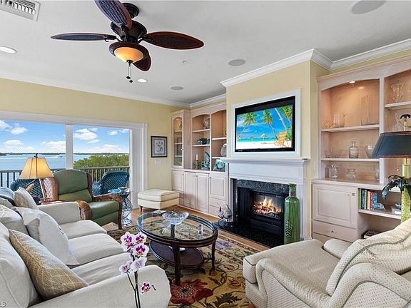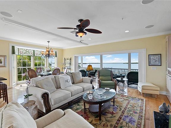 Nestled on the shore of Useppa Island, Sunset Cottage overlooks the Intercoastal waterway, Pine Island Sound, and daily sunsets over Cayo Costa island. Enter this warm and comfortable retreat through a spacious foyer, to a cozy den (convertible to a 4th bedroom) and two waterfront en-suite guest rooms. Ascend the oak stairway to the living and dining level, spilling out to a screened porch. The spacious kitchen of granite, with an island prep and a breakfast bar is the heart of gatherings for family and friends. Oak floors, fireplace with hand carved mantle, custom cabinets, volume ceilings and a half bath create a special island space for entertaining. The upper floor features the master suite with an office, or nursery, waterfront bedroom with TV and reading areas, fireplace and an open deck. The master bath includes tile and granite, double lavatory and shower with twin heads. Professionally designed interior, beautifully furnished and for. Re-engineered and rebuilt to hurricane code in 2005, home includes 80 feet of private dock with 5-6 feet of water. A terrific waterfront, luxury home value on a private island in Useppa Island Club.