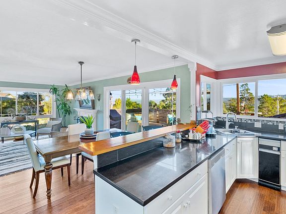 This unique corner location in Monterey's sought-after Mar Vista neighborhood hills offers wide views of the Monterey Bay below. Relax on the expansive deck taking in the morning sun with your coffee, and savor the view of Monterey Bay. Entertain friends and family from the spacious contemporary kitchen with black granite countertops, and converse with the guests in the open plan kitchen/dining/living area. Extend the gathering into the large family room featuring crown molding, built-in cabinetry and sliding doors that open to a flat back yard with space for dogs and children to play. Large windows let the sunshine in throughout this charming three bedroom, two bath house situated in a quiet residential neighborhood of Monterey conveniently close to shopping, and restaurants at the Del Monte Shopping Center. Only five minutes to the highway, and a short drive to the fun of Cannery Row and Fishermans Wharf, this home is superbly located.