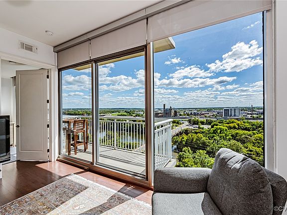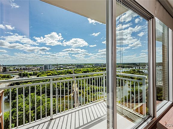 Enjoy long views across the James River and quiet sunsets from this beautiful 16th floor condominium in sought-after Vistas on the James. Rich hardwood floors throughout. 10-foot ceilings. Two bedrooms, each with a walk-in closet and private bath plus dramatic views from the primary bedroom. An open floor plan makes the most of views out over downtown and the river. Well-appointed kitchen with granite counters, barstool seating and stainless steel appliances.Heat pump recently replaced. All appliances included. Heat pump recently replaced.