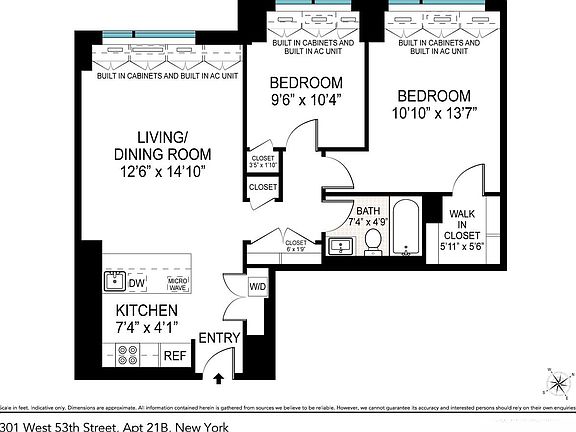Spectacular high-floor, west-facing views await you in this spacious 2-bedroom, 1-bath residence at 301 West 53rd Street, perfectly located in the heart of vibrant Hell's Kitchena neighborhood rich in art, culture, and energy. Designed by BP Architects with interiors by the acclaimed ASH NYC, this brand-new home features a thoughtful layout, 5-inch oak flooring, abundant natural light, air-conditioning in every room, and the convenience of a Bosch washer and dryer.