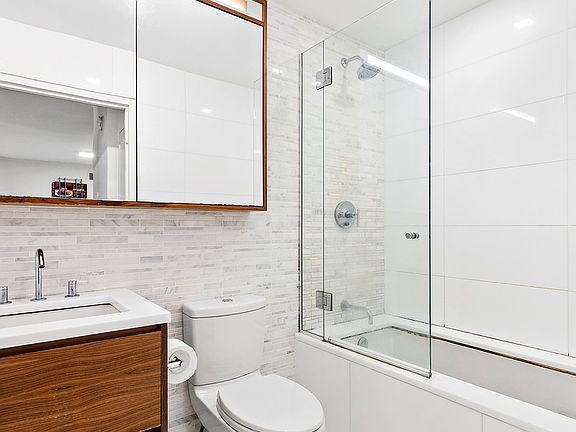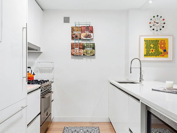 Full service building with luxury amenities - everything you need in one place. VIDEO/VIRTUAL TOUR AVAILABLE. THE APARTMENT Modern spacious 1 bedroom with condo quality finishes. Enter into the apartment into the fully updated, clean, sleek kitchen supplied with Jenn-air stainless steel appliances, ample cabinet space, and a breakfast bar. There is a full sized refrigerator/freezer, deep sink, microwave, 5 burner gas stove with hood, and scratch, stain & crack resistant Quartz countertops. The apartment is outfitted with Brazilian cherry wood floors. The living/dining area is large enough to accommodate a full couch set up and a proper table. Large windows in the living room and bedroom bring in the natural light and the HVAC unit provides user controlled heat or air conditioning. The bedroom is very spacious and can fit a king bed, furniture, and even an office or seating area to make a comfortable work from home space. The bathroom has a double mirror and deep soaking tub. There are 3 closets in the home: 1 double closet near the entry, 1 double closet in the bedroom, and 1 linen closet. BUILDING AMENITIES This is a full service 24 hour doorman and elevator building with top of the line amenities. You can still be in your building and feel like you have escaped to your neighborhood park, gym, or lounge. There is a landscaped roof deck featuring grilling, sunbathing & picnic areas. Windowed fitness center that offers yoga, cardio and weight equipment as well as men and women's sauna. Children's playroom. On-site resident manager. Valet/Parking garage. Laundry in building. LOCATION Stretching a full city block, Fifty-Third and Eighth is a unique building with convenience and accessibility to transportation (C,E at 50th St and A,B,D,1 at 59th St-Columbus Circle) and the city's numerous iconic and cultural destinations. Central Park, Columbus Circle, Lincoln Center, Times Square, Carnegie Hall, Plaza District, MoMA, Time Warner Center, Broadway, Rockefeller Center, Fifth and Madison Avenues, Hell's Kitchen and Hudson River Park.