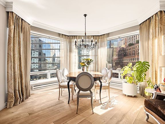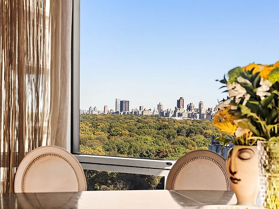 Perched above Columbus Circle, this beautifully renovated 2-bedroom, 2-bathroom residence was reimagined by its designer–architect owner. Bathed in natural light, it offers sweeping 180° views of Central Park, the city skyline, and beyond.