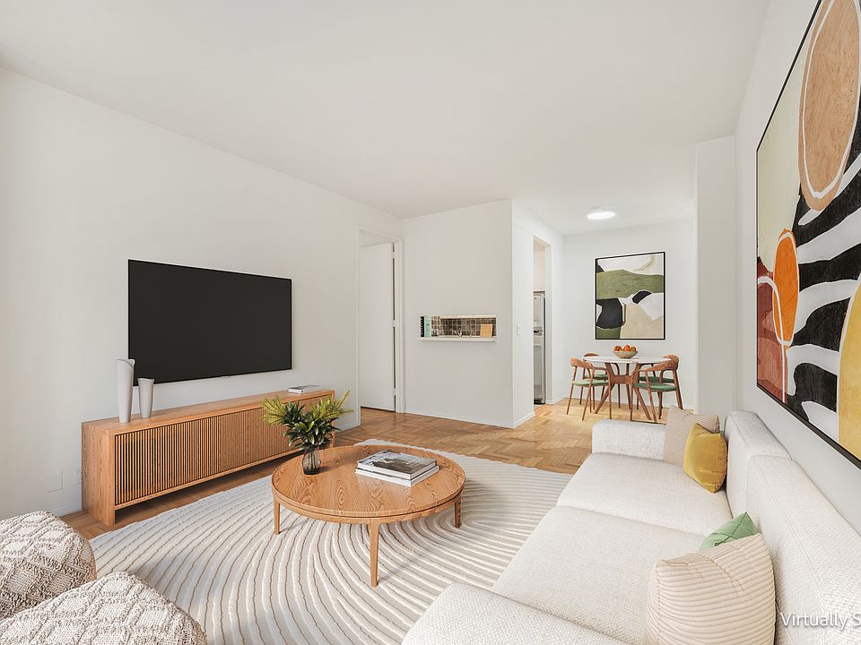 Step into a spacious living room bathed in natural light, featuring elegant hardwood floors and ample storage throughout. This unit seamlessly combines comfort and style, providing an ideal sanctuary in the heart of New York City.