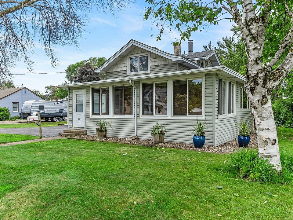 Delightful Bloomington one ½ story! Featuring a charming three-season porch, gorgeous hardwood floors, a wood-burning fireplace, and lovely vintage piano windows. Main level offers an open kitchen with breakfast bar and granite counters, a bedroom that makes for a great home office or den, and a conveniently positioned mudroom. Two additional bedrooms are upstairs along with a beautifully remodeled full bathroom. Large lot is nicely landscaped and has a spacious deck perfect for relaxation and entertaining. Insulated and heated garage provides space for four vehicles and nice room for storage. Situated on a corner lot with convenient access to several wonderful parks, shops, restaurants, the Mall of America, and quick highway access.