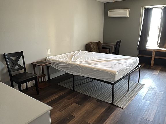 Unit 62 comes furnished with a queen size bed, night table, mini-fridge, microwave, table with two chairs and TV. All rooms are free utilities and free wifi.