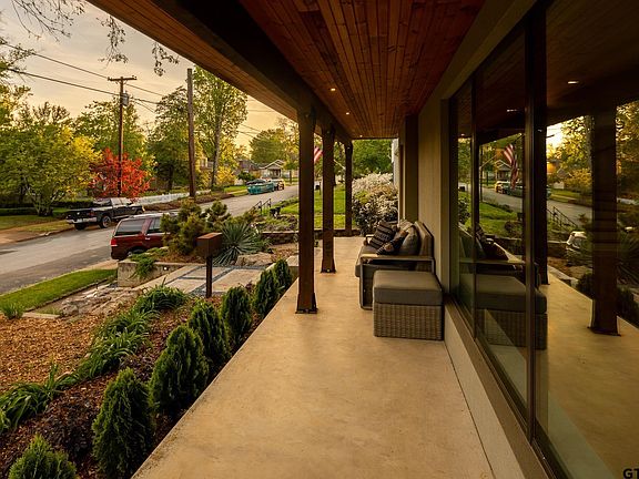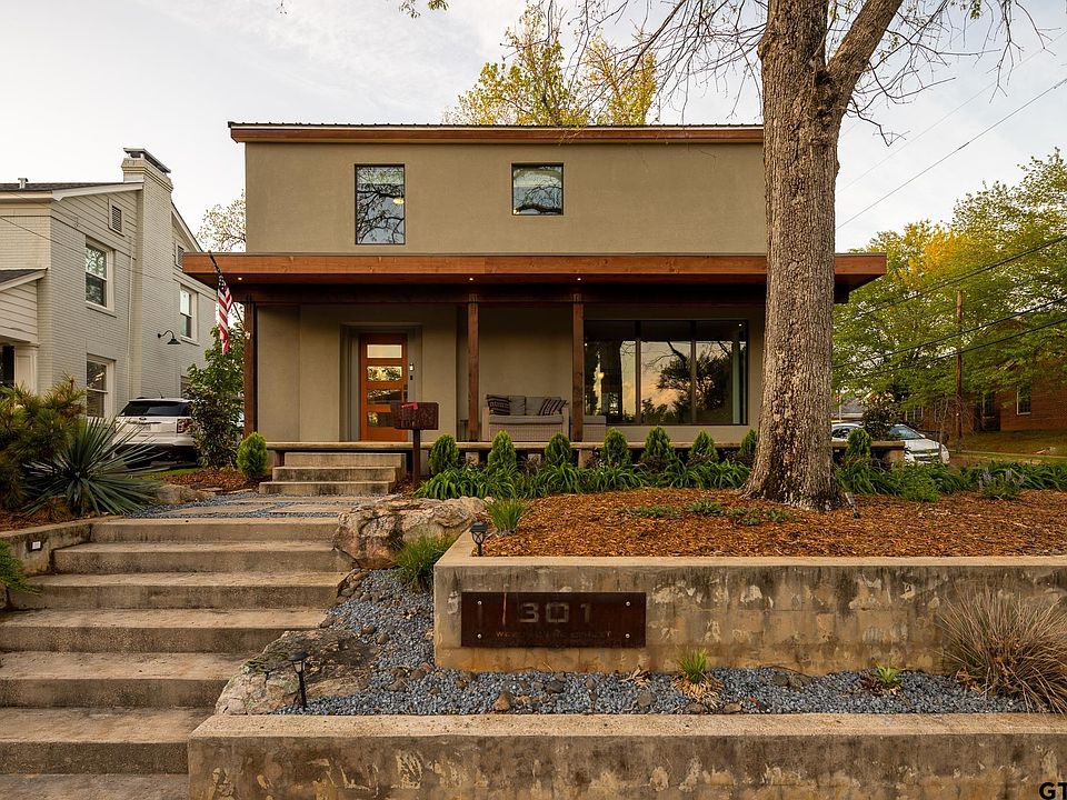 Hey Azalea District, meet Contemporary. You’ve seen this home on the corner of Dobbs and College transform over the years...you have been curious and wondered...well now you can own it! This home has undergone an incredible shift in style featuring modern architecture yet still embraces the charm of Old Tyler. Inside, the original hardwood floors and curved staircase and the immense natural light provided by large industrial floor to ceiling windows set the scene to mix the old with the new. You will enjoy the view of the brick streets, gorgeous yards beyond and waving neighbors from any room on the first level, encompassing the living and dining room, a full bath, kitchen and mud room that easily flow from one to another and then out through the double doors to the private outdoor living space. String the lights and gather your people to relax around the gas firepit and enjoy the low maintenance outdoor landscape that has been refreshed with new grass, shrubs and plants, privacy fence, and raised garden boxes. Back inside, wind your way up the stairwell complete with antique stained glass and light fixture to find 3 bedrooms, 2 full baths and a laundry area on the second level. The star of the primary suite is the bathroom featuring oak slab counters and shelves specifically milled for this project, a walk in shower and spacious walk in closet. The full guest bath upstairs has also been completely updated and offers a bathtub. The spaces in this home have been meticulously planned out so that there is not a wasted inch! Other features to note: floating concrete front porch spanning the width of the house, custom mahogany front door, aluminum roof, detached garage with additional attic space and more! You just have to come see it to believe it!