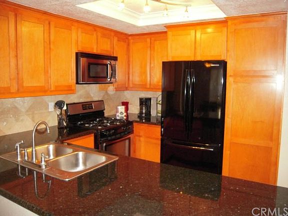 WELCOME HOME!! This gorgeous single level condo is located in the Mountain View Villas, a complex that was renovated in 2009. This lovely condo with its open floor plan features an upgraded kitchen complete with stainless steel appliances, granite counters/breakfast bar and stunning light fixtures. Relax in the spacious living room with recessed lighting and crown molding. Both remodeled bathrooms feature granite counters and travertine flooring. The large master bedroom has his and hers mirrored wardrobes and a private balcony. Everyone will appreciate the convenience of the inside laundry. The complex boasts a secure underground parking area with automatic opener. This unit has two assigned parking spaces and a built-in storage area. It is conveniently located near the Brea Mall, Downtown Fullerton and nearby major shopping centers. The condo development maintains a sparkling pool, large grassy area and barbecue. Come buy!!