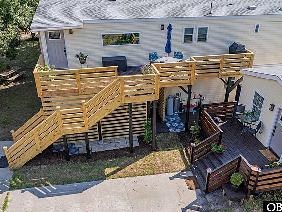 This high-yield investment opportunity in Ocean Acres is a fully renovated SINGLE -FAMILY home with flexible rental potential. It is not a multi-unit property but a single residence offering rentable private rooms, ideal for maximizing income while maintaining residential zoning. The main level features a spacious three-bedroom, two-bath layout with modern finishes, luxury vinyl flooring, and generous living space. On the ground level, two separate rentable areas have been thoughtfully designed: one includes a bedroom, full bath, flex space/office, private entrance, full kitchen (no stove), and in-unit laundry; the other is a one-bedroom suite with a full bath and great room/kitchenette (no stove). Additionally, a leased storage shed/workshop provides supplemental income. The property generates approximately $66,000 annually and has room to expand. All renovations were completed with proper permits and full town approval, ensuring compliance with local building codes and zoning regulations. Located near the Nags Head Woods Nature Preserve and the Ocean Acres stoplight, this home offers easy access to shopping, dining, and the Outer Banks lifestyle. With its strong rental appeal and strategic location, this single-family home presents a rare opportunity for investors seeking long-term growth and reliable returns.