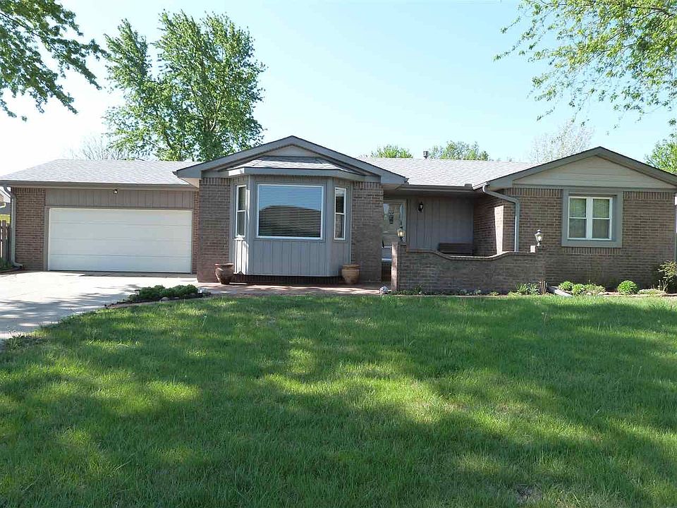 Well maintained home located in Goddard and within walking distance of the public pool and park. Scenic landscape in both the front and back lawns along with an outdoor storage building for tools and lawn equipment. There is an oversized two car garage, covered front patios and cement front and back patios. Inside features spacious bedrooms and living spaces throughout the house. The master bedroom has a master en suite with two sinks and a walk in closet. Laundry is located on the main floor along with a large eat in kitchen and tiled entry. Downstairs features a large storage room with additional built in closet. Home is being sold as is.