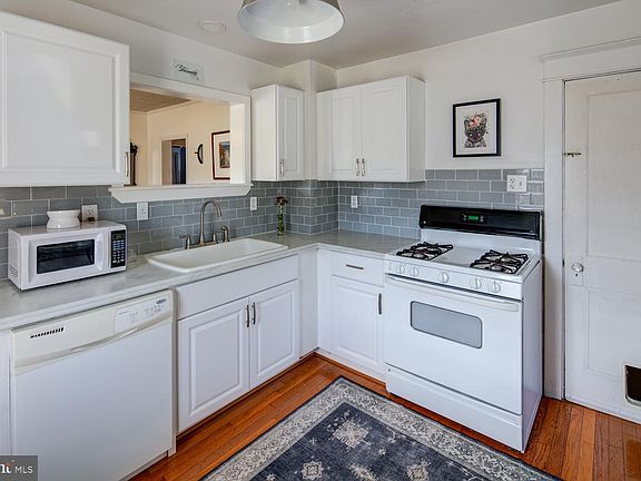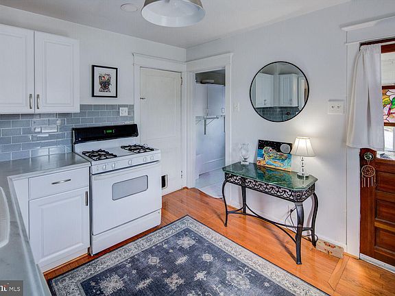 This charming bungalow offers the perfect blend of classic charm and modern comfort. As you step inside, you're greeted by a spacious enclosed front porch, the ideal spot for your morning coffee or evening relaxation. Inside, enjoy the comfort of your cozy carpeted livingroom or enjoy a wonderful meal in the formal dining area.  The open concept allows for entertaining seamlessly and leads the way to a gorgeously renovated kitchen featuring backsplash, newer counters and a 33" cast iron sink. The kitchen, dining and hallway also offer beautiful hardwood flooring. As an excellent option for one floor living, both bedrooms and bathroom are all on one floor.  The bathroom has also been tastefully updated for both functionality and elegance. Throughout this lovingly cared for home, you’ll find an abundance of natural light. This practical home offers plenty of storage, found in a full unfinished basement, detached garage or in the attic featuring staired access. There is also a small mudroom off the kitchen, where you will find main-level laundry hookups if you would prefer instead of using the laundry in the basement. From the kitchen, you may also step out to the reach porch, a great place to get fresh air with your morning coffee.  But wait there is more!  You will appreciate the efficiency of natural gas heating and especially enjoy central air conditioning.  Outside, a fenced yard provides a private outdoor oasis, beautiful mature trees and a storage shed. Ample parking is available with an attached one-car garage, private driveway and as a corner lot, plenty of street parking.  Buy with confidence - new roof in 2018.  This charming home is located in the very convenient area of Elmhurst. It is easily accessible from Boxwood Road or Maryland Avenue, just minutes from Amazon, Banning Park, and a short ride to I-95 for commuting. .