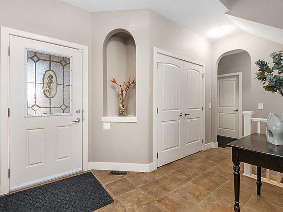 Welcome to your new home on a sunny corner lot in Westridge! As you step inside, you are greeted by a large entrance featuring ceramic tile floors that lead you to a versatile main floor office. This space has French doors and a transom windows for extra light, making it the perfect spot for work or study An expansive living room with large windows and gas fireplace creates a cozy space on a chilly evening. You will appreciate the white kitchen, equipped with upgraded cabinets, quartz countertops, stainless steel appliances and under-counter task lighting. There is plenty of counter space and cupboards as well as a pantry. The breakfast bar is a great place to relax over morning coffee. The adjoining dining area features more oversized windows that overlook the private backyard, where trees and shrubs offer added privacy. The backyard is great for entertaining, complete with a pergola and concrete aggregate patio. Unwind after a long day in the hot tub. The functional, thoughtfully designed main floor also features a convenient laundry room and a powder room. The second floor bonus room is bathed in natural light and features vaulted ceilings. The primary bedroom is a true sanctuary, with another vaulted ceiling, a spacious layout with large walk in closet and an 5-piece ensuite bathroom. Indulge in the double vanities with quartz counters, a double shower with a bench, and a relaxing corner soaker tub. Two additional kid-friendly bedrooms and a well-appointed 4-piece bathroom complete this level, along with extra storage options provided the linen closet and a dedicated storage closet in the main bath. The unfinished basement presents a blank canvas, offering lots of storage space and the perfect opportunity to create the additional living area of your dreams! You’ll love the impressive upgrades throughout, including crown mouldings, 9-foot ceilings, and hardwood floors. There is a new, high efficiency furnace to keep you comfortable this winter. This lovely family home has an ideal location, backing onto a walking path, and is just minutes away from schools, playgrounds, green spaces, and convenient shopping options. Experience the perfect blend of comfort, style, and functionality. Quick possession is possible – be home in time for Christmas!