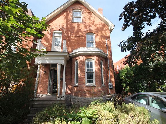 This character-filled all-brick century home offers a spacious three-level layout with original architectural details throughout. Intricate mouldings, classic pillars, period baseboards, hardwood flooring along with decorative fireplace, high ceilings and loads of charm in need of some loving care and restoration. The main level offers spacious living and dining areas, galley kitchen leading to the family room addition with three piece bath - makes an ideal home office for professionals. The versatile floor plan offers a private formal dining area also. The second level features a spacious primary bedroom with double closets and cheater 5 piece ensuite with marble tile, a large bedroom and small den with access to balcony. The bright third level with skylight also offers a separate bedroom suite area with sitting room, 4 piece bath and bedroom. THE HOME HAS SETTLED AND LIKELY REQUIRES SOME REMEDIATION. Property being sold by Estate Trustee that has never occupied the home and therefore, SOLD AS IS. Offers gladly considered as of Dec. 1. 5 full and clear bus days irrevocable required if offer submitted before 1PM; 6 full and clear bus days irrevocable if offer submitted after 1PM.