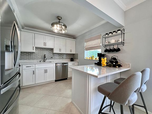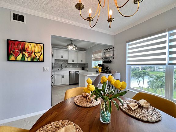 Absolutely Spectacular With Water Views In 55+ Century Village! Gorgeous CORNER 2/2 With Lovely Water Views From Side & Back. Pretty Updated Kitchen With White Soft Close Cabinets, Granite Counters, Designer Tile Backsplash, Stainless Appliances, and Water View. Updated Baths. Stunning Lanai With Floor to Ceiling Windows to Capture The Water Views! Loaded With Tasteful Quality Updates: Impact Windows All Around - Including the Lanai, Neutral Tile Flooring On The Diagonal Throughout, Decorative Crown Molding, Custom Window Treatments, Updated Interior Doors. and Closet Systems. Convenient Location. Luxury Wellington Section Building With Elevator, Extra Storage, Trash Chutes, and Two Private Resident Pools. Century Village Is A 55+ Resort Style Community With So Much To Offer.. shows, movies, clubs, pools, security, and transportation service. The Clubhouse features a theater, indoor pool, card room, community/party room, billiard room, shuffleboard, tennis, pickleball, bocce, and two outdoor pools. Numerous heated outdoor pools throughout the community. Separate fitness center with gym and outdoor heated pool & resistance pool. Two guarded gates and 24-hour roving security patrol.