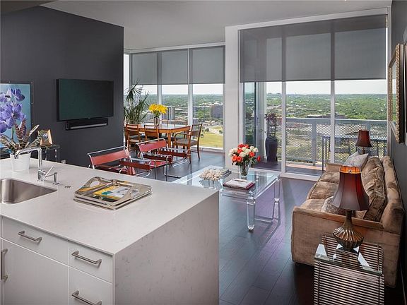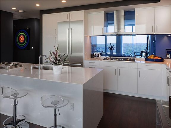 This highly sought-after and rare southeast corner overlooks the Capitol on one side and Lady Bird Lake on the other. There are only nine of them in the entire building and none have this level of customization. Note the dramatic dining room that projects out over the lake, as well as the master bathroom reconfigured to maximize its Capitol views. Two prime lower level parking spaces. Custom hard-wired shades. Custom countertops and backsplash. Custom closets. Home automation. Built-in refrigerator. Without any western exposures, this unit's views and south facing balcony may be enjoyed all day long! The Independent includes two full floors of amenities with no less than a dog park, an indoor/outdoor children's playground, three hotel rooms (for resident use only), a theater, two conference rooms, a yoga/pilates room, a gymnasium, a billiards room next to the pool/outdoor kitchen, and Trader Joe's across the street.