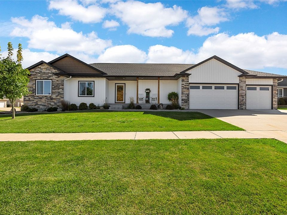 granite countertops, subway tile backsplash, and a farmhouse sink, flowing effortlessly into the living area with a gas fireplace set against a custom stone hearth—perfect for cozy Iowa evenings. The primary suite offers a luxurious retreat with a spacious walk-in closet, dual vanity, and custom tile shower. Hardwood flooring runs through much of the main level. The finished lower level is an entertainer’s dream, featuring a wet bar, electric fireplace, two more bedrooms, and a third full bath. A sump pump with battery backup adds extra peace of mind. Relax on the back deck overlooking the golf course, or invite friends over for drinks after a round—this home is built for both everyday comfort and effortless entertaining. Close proximity to Hwy 30 and 15 min from SW side and The Fountains in the NE quadrant!