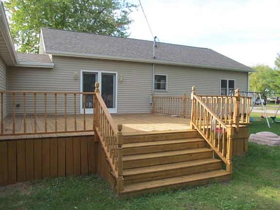 This ranch home has basically been re-built. New in 2005: roof, vinyl siding, windows, insulation, wiring, drywall, 6 panel doors, trim, all cabinets, all counter tops, mechanicals, flooring, plumbing & electrical fixtures. The floor plan features a large kitchen with breakfast bar, pantry, spacious dinette & a huge deck, living room, 2 bedrooms, main level laundry & family/rec room in the lower level. If you need storage this has it. Both attached & detached garages.