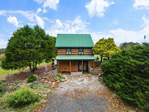 There is just something about a log home that evokes the romantic notion of cozy evenings around a glowing fire surrounded by earthy beauty and an escape from the daily grind ...and that is just what you get at this charming home along with modern conveniences to create comfortable, functional living. HOME COMES FURNISHED! Riverhills Subdivision on the New River, set on 7+ ac with updated landscaping, 26 fruit trees with rolling hills. New breaker box & new metal roof screws in 2022, stained & septic pumped in 2023, new storm door, updated baths & kitchen appliances, sink and countertops in 2024! Open living/dining with pine hardwood, vaulted ceilings, exposed beams & natural light sweeping across the room from the many windows. Space to breathe & an irresistible backdrop!